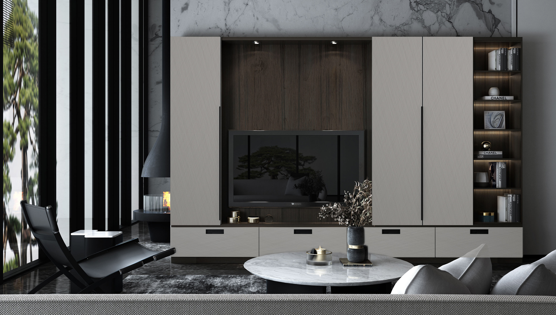 The straight edge design of the wardrobe door panel is mainly composed of no handle and single hole small handle, combined with a